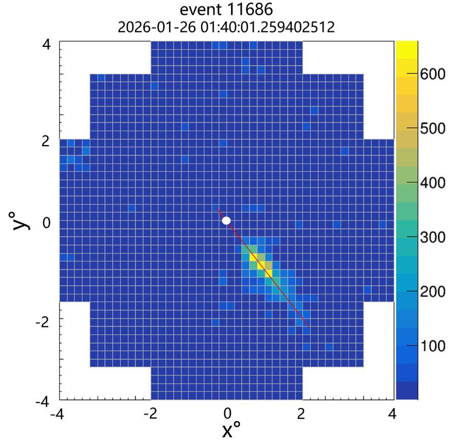 LACT首台相机拍到的宇宙线簇射照片。(天府宇宙线研究中心供图)