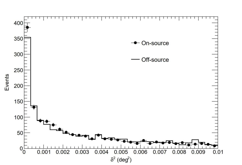 LACT工程样机于1月26、27日两晚累计观测到来自蟹状星云方向的宇宙线,其中有16个光子超过宇宙线背景。(天府宇宙线研究中心供图)