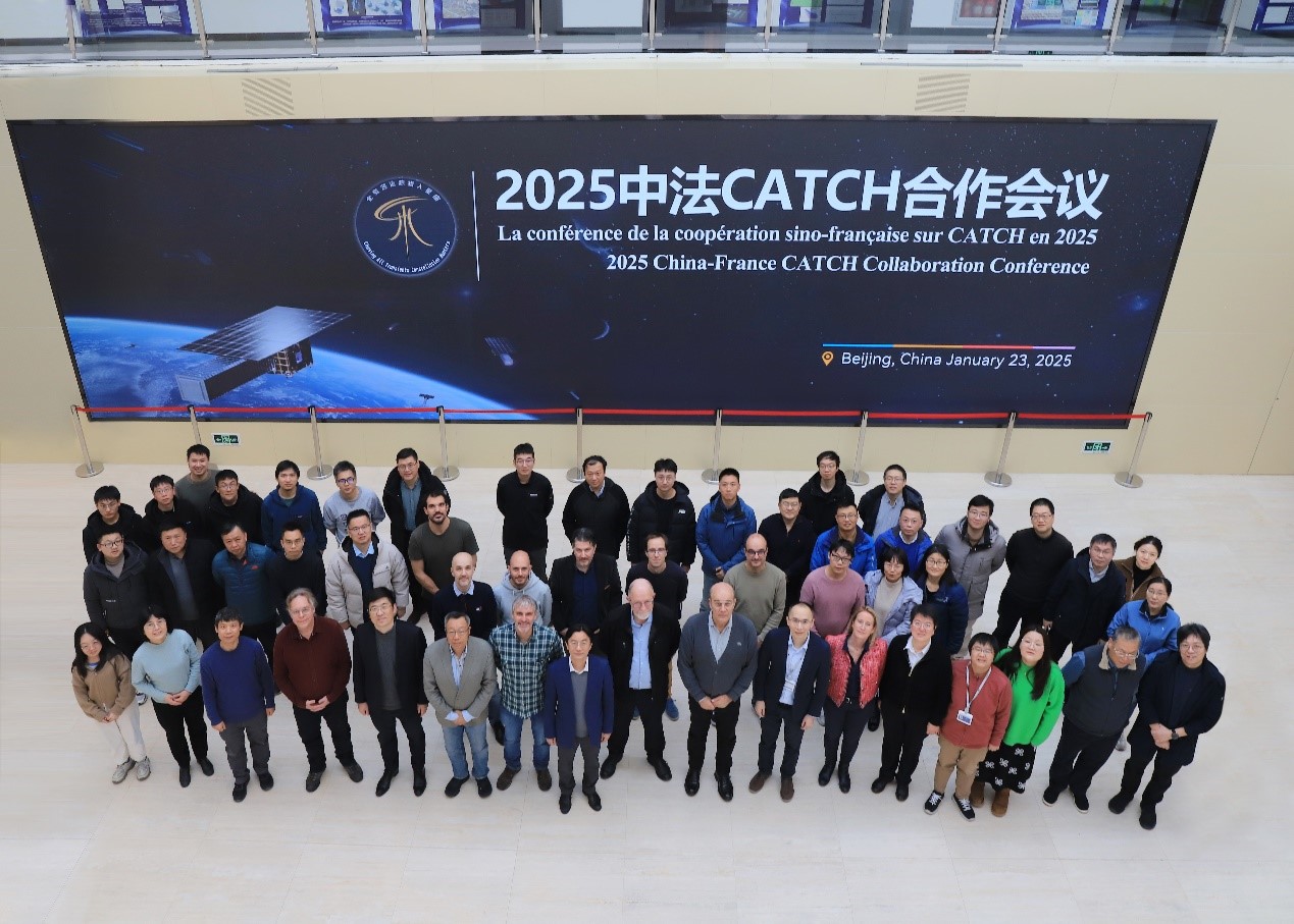 2025年1月23日,2025中法“全变源追踪猎人星座”计划(Chasing All Transients Constellation Hunters,简称CATCH)合作会议在北京中国科学院高能物理研究所顺利召开。本次会议由粒子天体物理全国重点实验室主办,高能所张双南研究员和熊少林研究员共同主持,旨在落实中法航天合作联委会第十四次会议精神,为即将到来的法国国家空间研究中心科学评估做准备。来自法国国家空间研究中心、法国替代能源与原子能委员会、法国国家科学研究中心天体物理与行星学研究所等5家法方研究机构,以及中国科学院高能物理研究所、中国科学院微小卫星创新研究院、中国科学院国家天文台、上海交通大学、广西大学等14家中方科研院所、高校的70余位学者参加了此次会议。