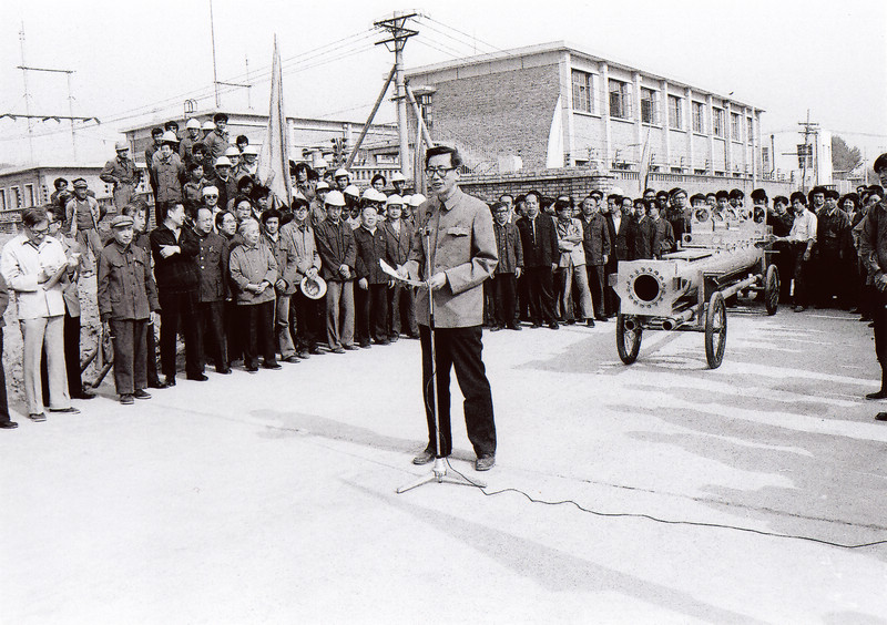 1986年5月6日,北京正负电子对撞机第一根加速管安装前,工程总经理方守贤做动员