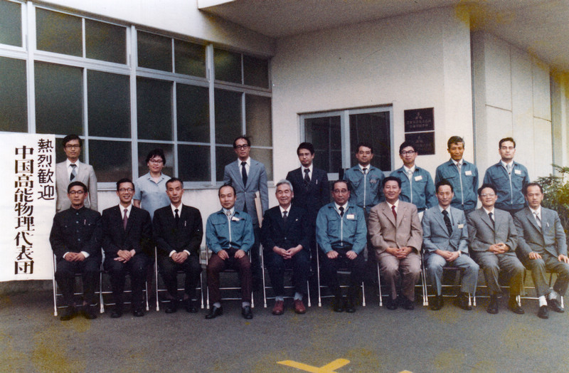 1977年,中国高能物理代表团访问日本KEK等实验室。左一徐绍旺,左二严太玄,左四钟辉,右五张文裕,右二方守贤,右一于清浮。
