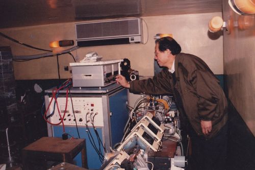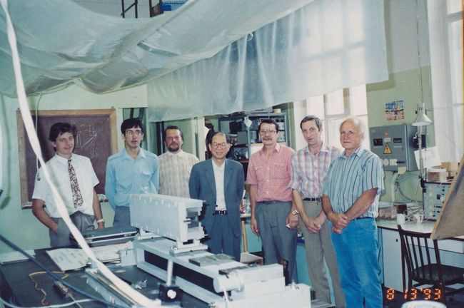 1993年,在莫斯科库恰托夫研究所参观扭摆磁体实验室