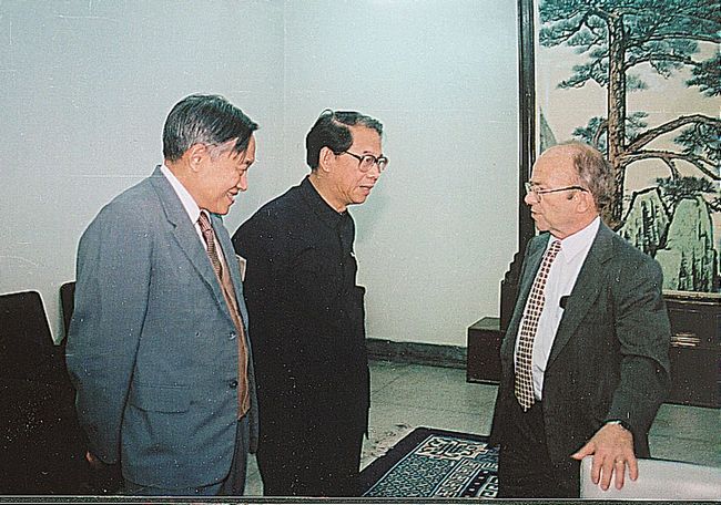 1994年,在北京召开的加速器会议期间与王淦昌(右)、陈耀华(中)合影留念