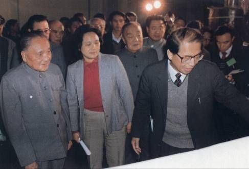 1988年,谢家麟向邓小平同志等党和国家领导人汇报北京正负电子对撞机建设情况