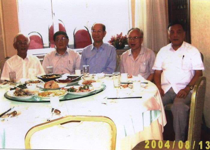研制我国第一台可向高能发展的电子直线加速器时的青年骨干(左起:李广林,潘惠宝,谢家麟,顾孟平,朱孚泉)