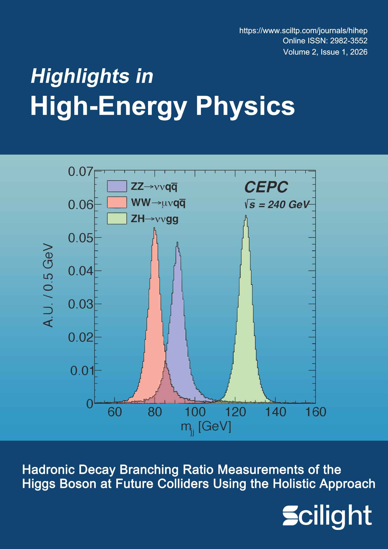近日,中国科学院高能物理研究所阮曼奇团队在粒子物理实验方面提出基于人工智能的“Holistic Approach”方法,可大幅提升粒子物理实验的科学探测能力。本成果以《Hadronic decay branching ratio measurements of the Higgs boson at future colliders using the Holistic Approach》为题,被期刊 Highlights in High Energy Physics发表为封面文章。