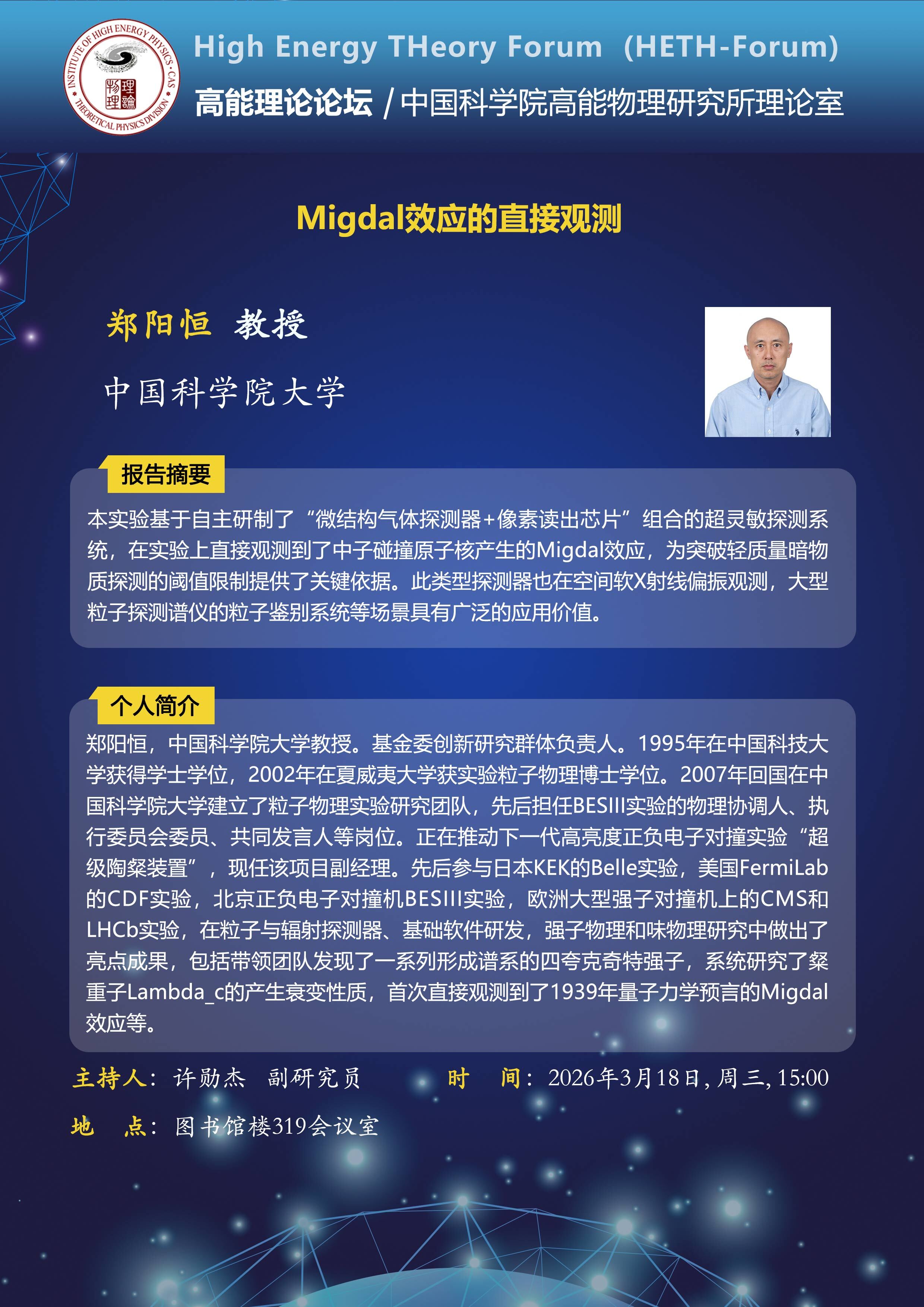 【03.18】高能理论论坛第124期--Migdal效应的直接观测