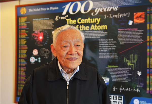 2008年11月,叶铭汉(左一)、谢家麟和李政道在高能所