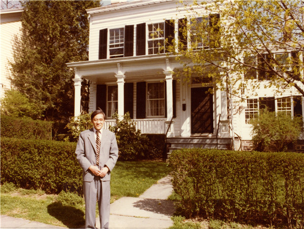 1981年,叶铭汉在普林斯顿大学做访问学者期间,在爱因斯坦故居前留影