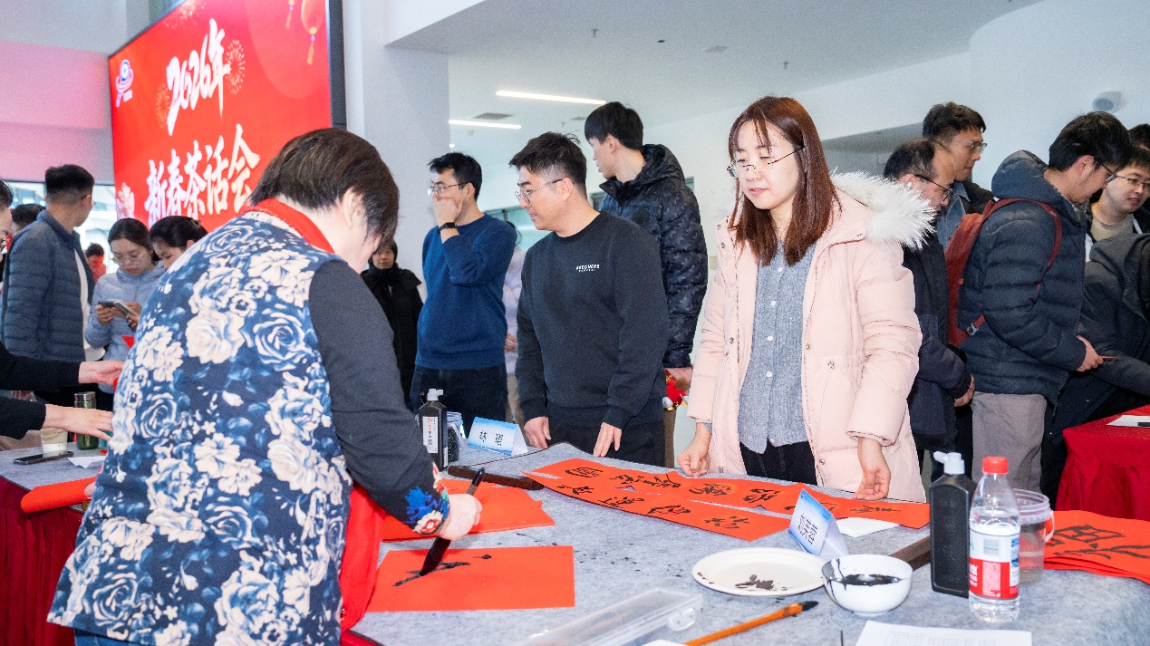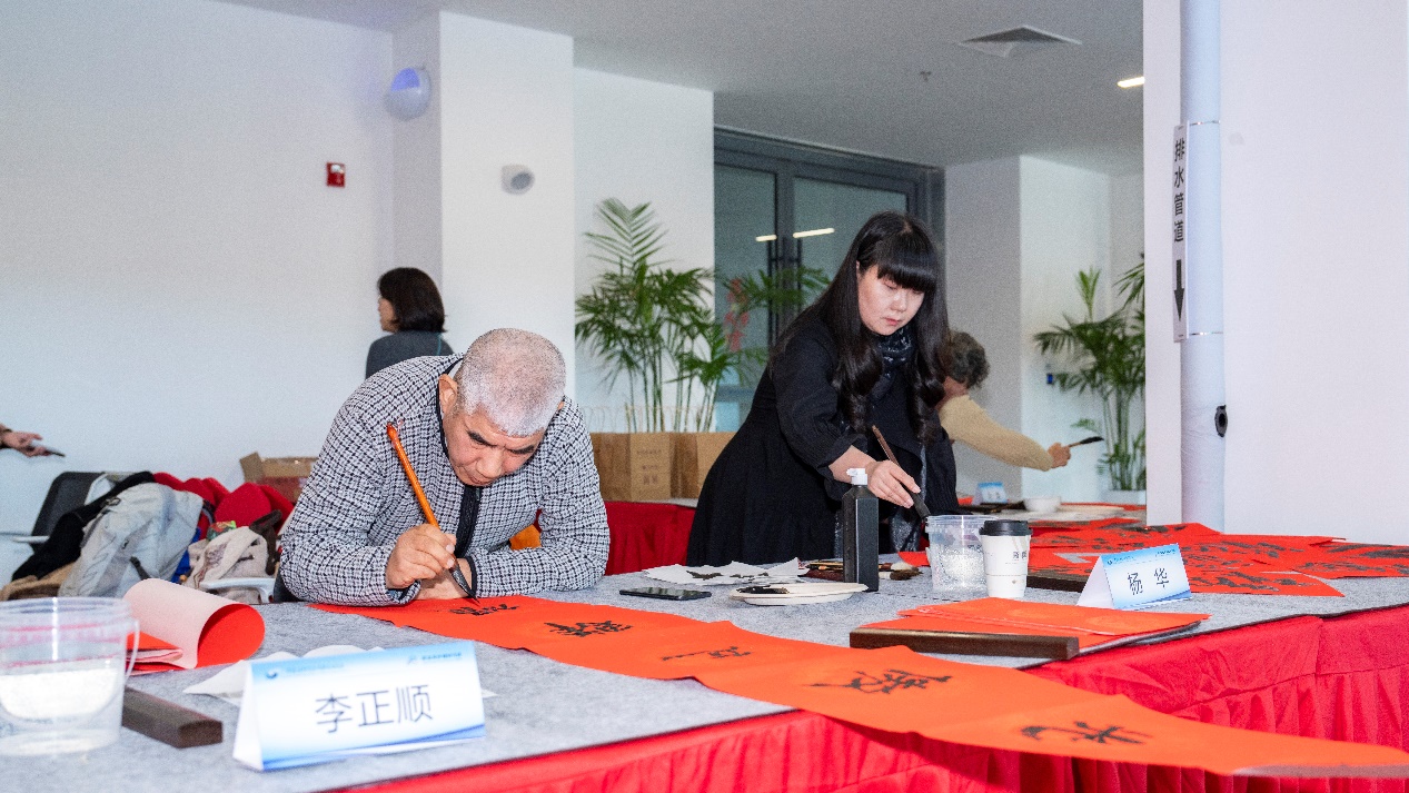 随后,中国科学院美术家协会主席杨华携协会代表在HEPS现场挥毫,为科研人员书写春联及福字,勇追光傲立群雄、集众智论剑巅峰,国已有四代高能、东方亮光耀苍穹,笔墨饱满,寄托了对科研人员的新春慰问及对HEPS未来发展的美好祝愿。