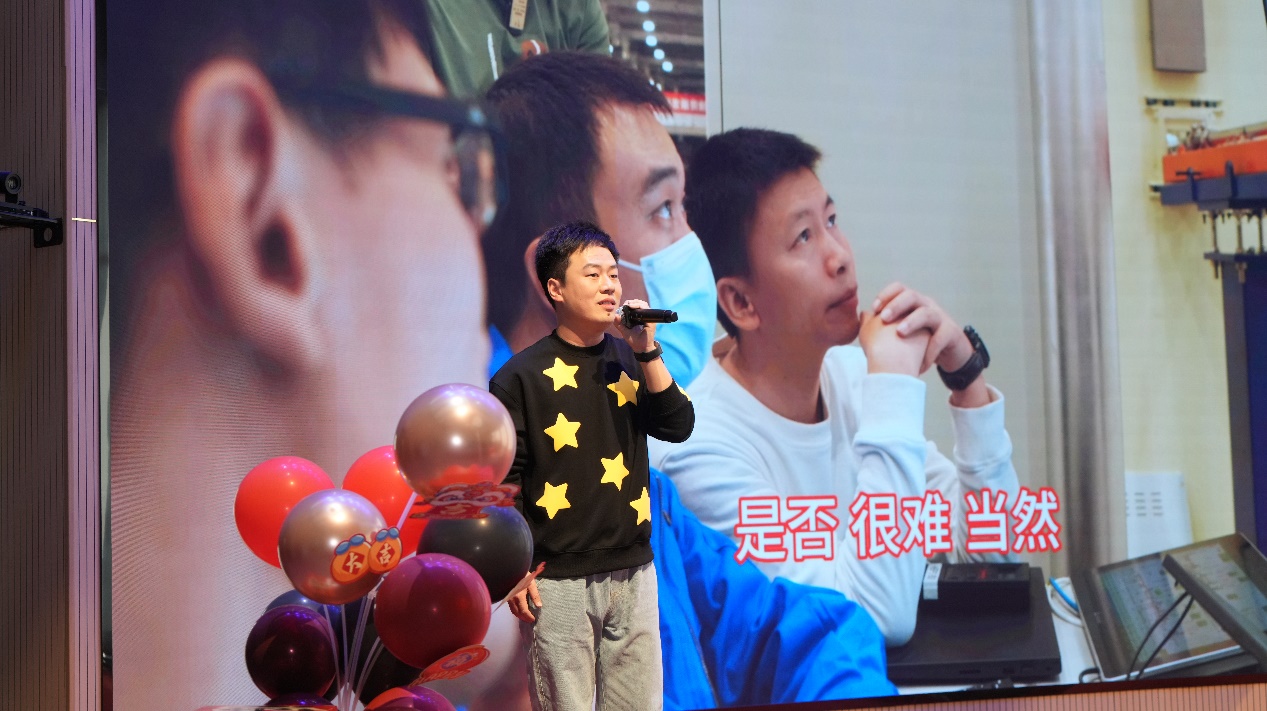 文艺演出环节将茶话会推向高潮。工程指挥部与各系统代表纷纷登台,献上自编自演的节目。工程指挥部带来了诗朗诵及三句半《追光逐梦迎新程》,为新征程加油鼓劲。一首由科研人员原创填词的歌曲《裹着心的光》则深情回顾了HEPS建设与调光的艰辛历程,作词细腻,MV画面采撷自一线调试现场,将追光路上的汗水与荣光娓娓道来,令在场建设者动容。另一首原创歌曲《高能所是我的家乡》以东北风味的诙谐曲调唱出了对我所深深的归属感,引得全场会心一笑,年味十足。茶话会穿插了HEPS知识答题、游戏互动和抽奖环节,答题内容紧扣各部建设成果与关键技术节点,在轻松愉快的氛围中回顾了工程全线的奋斗足迹。